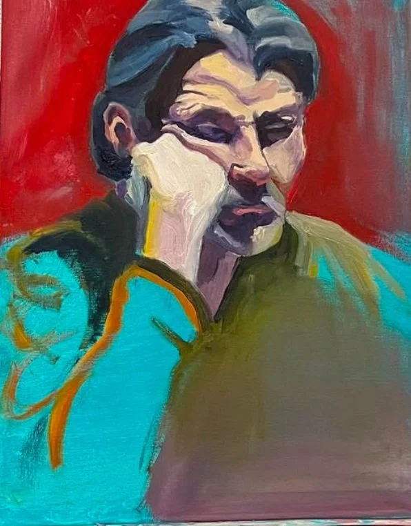 This is a tribute to Frank, a character I saw briefly on a shop window flyer when I was a young teenager. His sickly sweet schoolboy-esque demeanor caught my eye - and a string to my soul - immediately. Camera phones had yet to come into fashion, so I sketched the image quickly, tucked it in my back pocket, and ran to catch up with my friends. I held onto that sketch, and I've reproduced Frank's likeness in many mediums and as many forms over the years. He has become a beloved figure in my home. In 2024 I explored Frank as a vibrant oil painting. The process was a challenge that forced me to be brave in the way I pushed color, and embrace abstraction where my technical skills fell short.